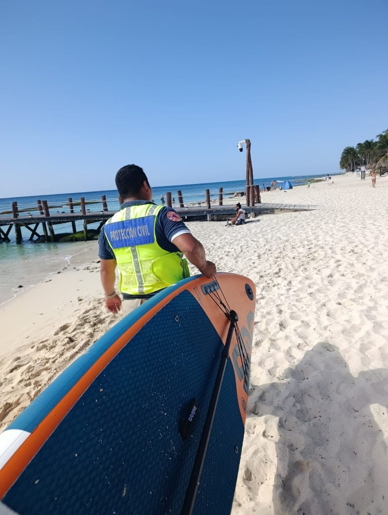 Elementos de la Secretaría de Protección Civil, Prevención de Riesgos y Bomberos de Playa del Carmen realizaron con éxito el rescate de dos turistas argentinos que quedaron a la deriva debido a fuertes vientos y oleaje mientras practicaban paddle surf.