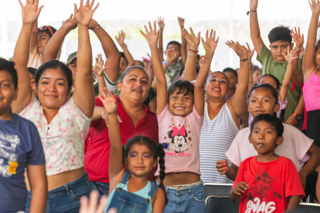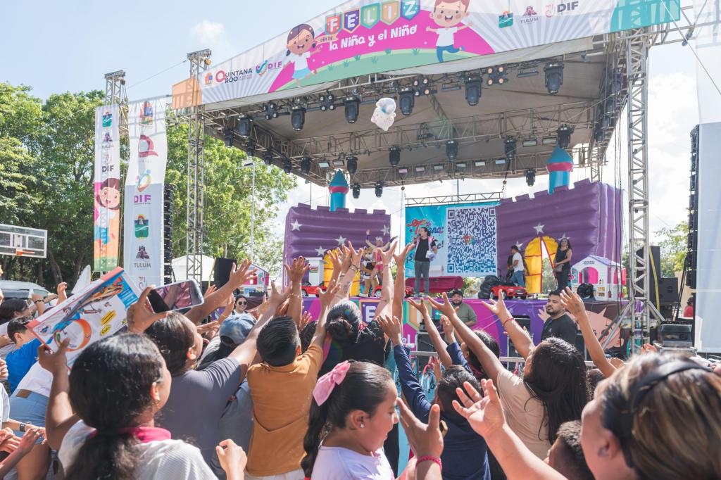 Más de 8 mil niñas y niños de Tulum vivieron una tarde inolvidable durante la celebración del Día de la Niña y el Niño, donde disfrutaron del espectacular show de la «reina de los niños», Tatiana. Con canciones clásicas como “No me quiero bañar”, “El patio de mi casa” y “Pimpón”, la artista hizo cantar y bailar a los pequeños, en un ambiente lleno de alegría, regalos y diversión, como parte de las acciones para fortalecer el tejido social.