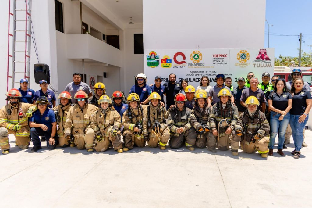 Tulum, Quintana Roo a 28 de abril del 2025. El municipio de Tulum, a través de la Dirección de Protección Civil y Bomberos, participó en el simulacro nacional impulsado por el gobierno federal para evaluar la capacidad de respuesta y eficiencia ante situaciones de emergencia, a fin de mejorar los procesos.
