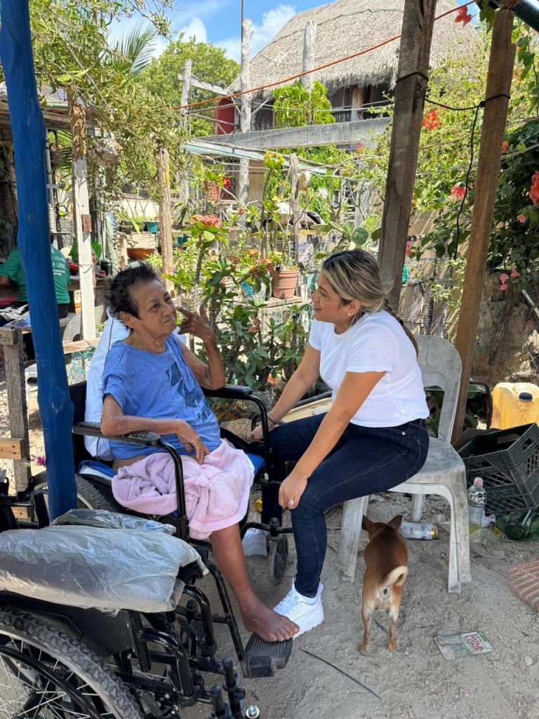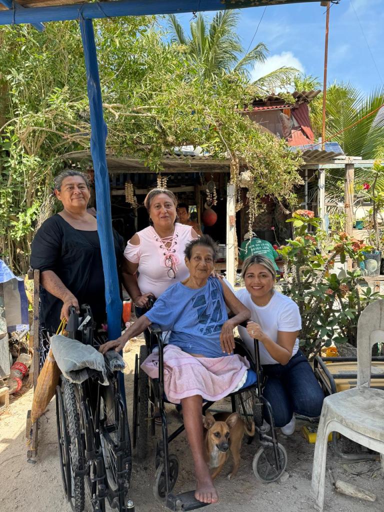 La licenciada Fany Gallegos, directora del Bienestar del Ayuntamiento de Tulum, cumplió el compromiso que previamente había hecho con las y los habitantes de Punta Allen, al entregar apoyos funcionales a personas adultas mayores de esta comunidad costera.