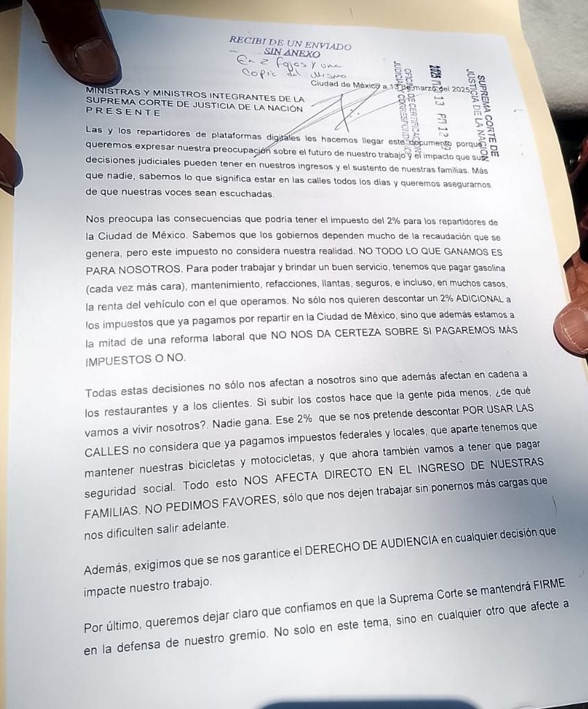 Mientras tanto en dias pasados Repartidores y conductores de plataformas por aplicación realizaron cierres en distintas partes de la Ciudad de México bajo el argumento de que no cuentan con certeza sobre los efectos que tendrá la implementación de la reforma de ley que pretende otorgarles seguridad social.