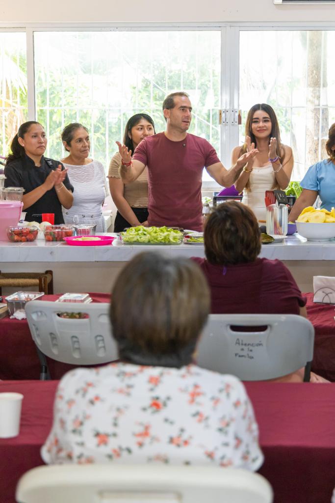 Como parte de la jornada, se entregaron detalles florales a las mujeres mayores que asistían al taller de cocina saludable, una de las muchas actividades que forman parte de la estrategia municipal para mejorar la calidad de vida de la población mayor de 60 años.
