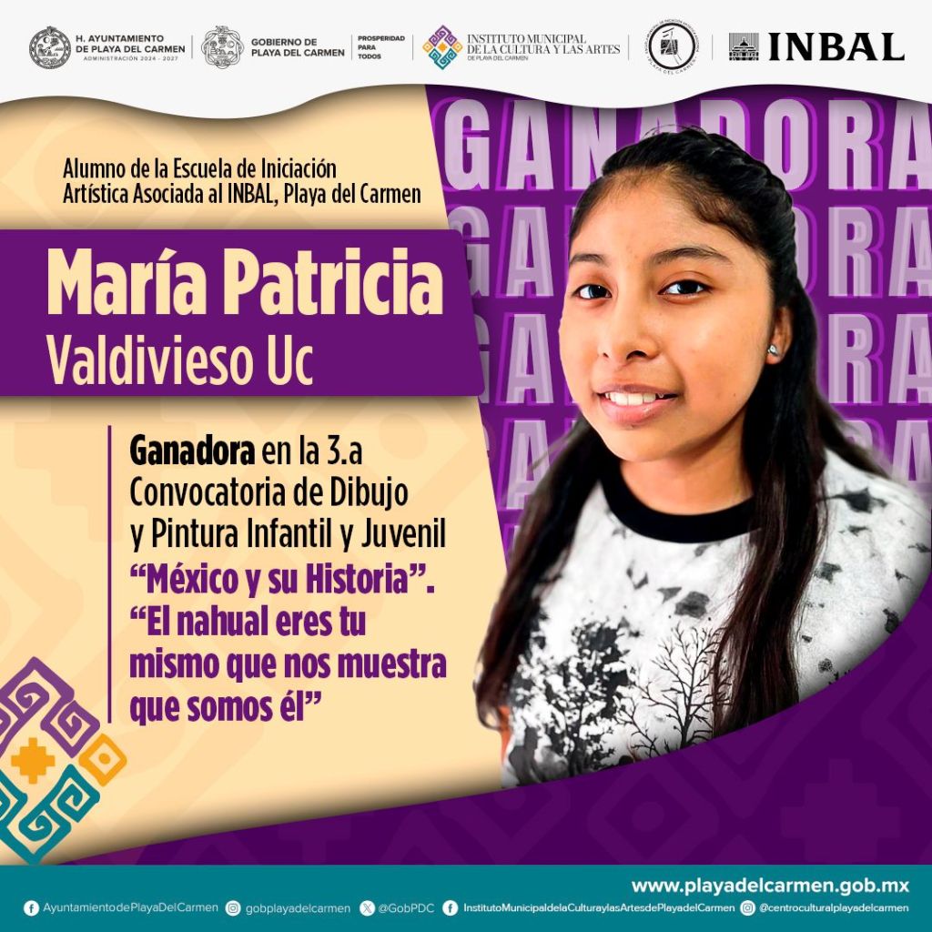 La Escuela de Iniciación Artística asociada al Instituto Nacional de Bellas Artes y Literatura (INBAL) celebró un logro sobresaliente: la joven alumna María Patricia Valdivieso Uc, de 14 años, obtuvo el primer lugar en la Tercera Convocatoria de Dibujo y Pintura Infantil y Juvenil “México y su historia”, cuya edición 2025 se centró en la temática “Las Leyendas de México”. Su obra ganadora lleva por título “El nahual eres tú mismo”.