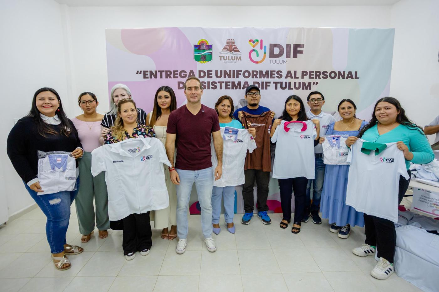 En un acto de reconocimiento al esfuerzo diario de quienes brindan atención a las familias tulumnenses, el presidente municipal, Diego Castañón Trejo, entregó 280 uniformes al personal del Sistema para el Desarrollo Integral de la Familia (DIF) Tulum.