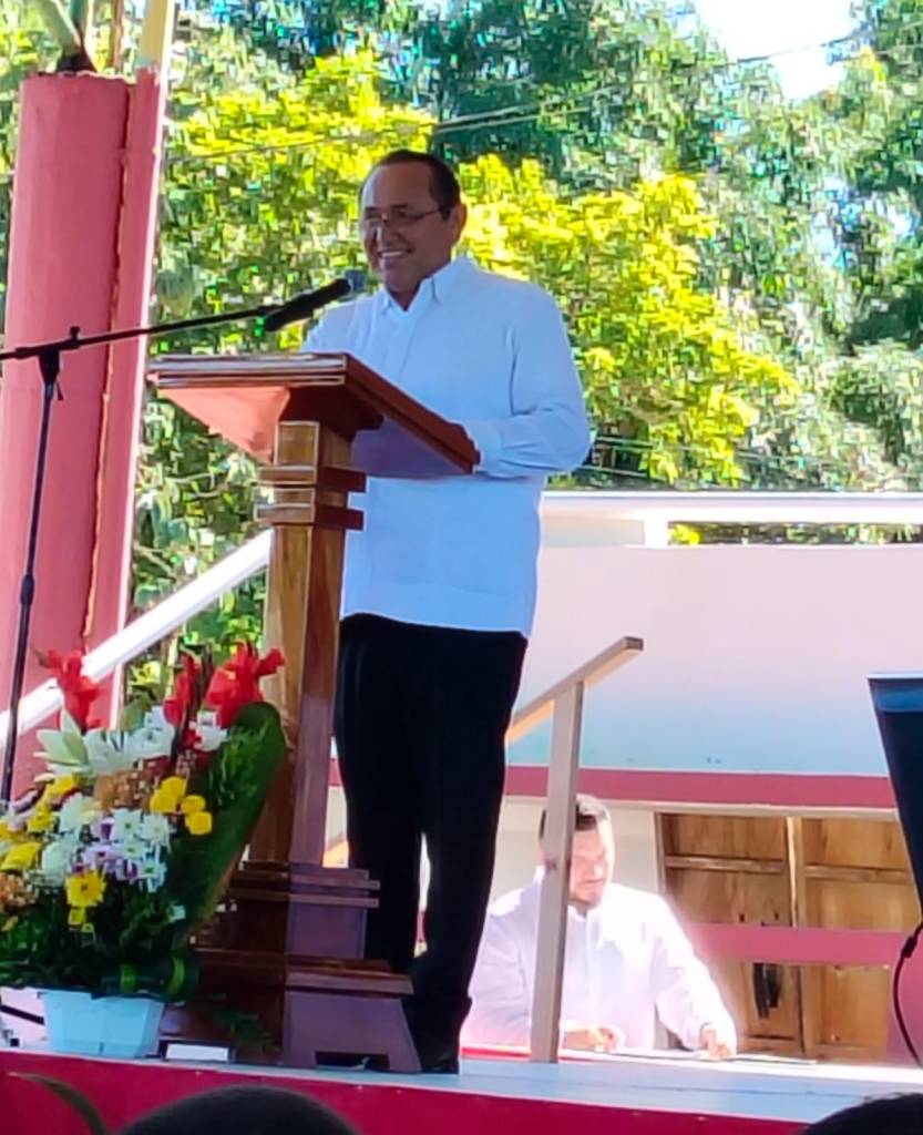 Kantunilkín, Quintana Roo, 12 de septiembre.– En sesión solemne del Ayuntamiento de Lázaro Cárdenas, el presidente municipal Nivardo Mena rindió su primer informe de gobierno correspondiente al periodo 2024-2027, en un acto que reunió a representantes de los tres poderes del estado.