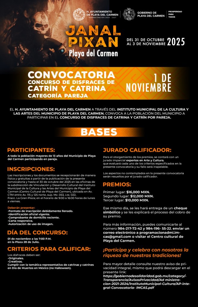El Instituto Municipal de la Cultura y las Artes invitó a las familias playenses a participar en los concursos que se llevarán a cabo como parte de las festividades del Janal Pixan 2025, que este año contará con una bolsa de premios cercana a los 200 mil pesos.