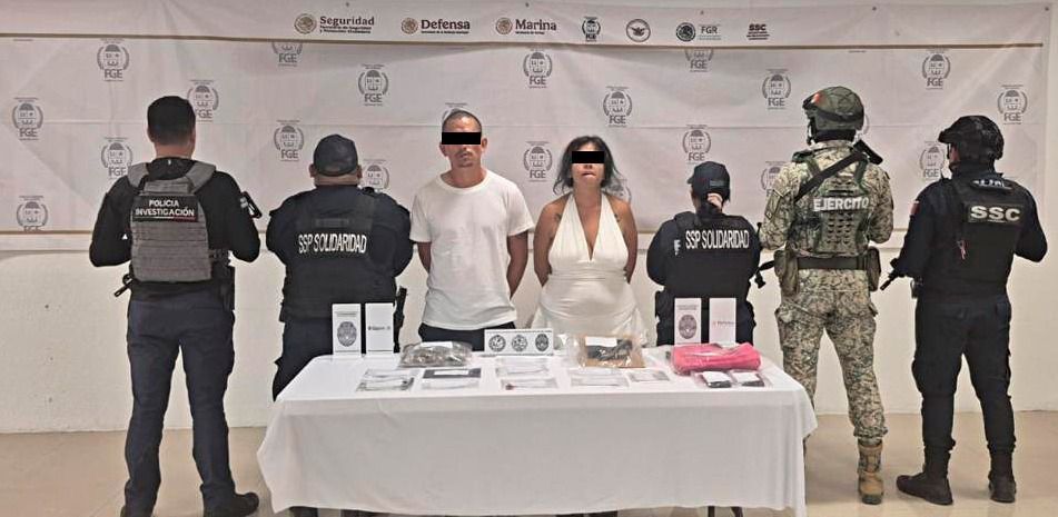 En Playa del Carmen, elementos de la Secretaría de Seguridad Ciudadana detuvieron a Daniel Alberto “N” y Alexalim “N” en el fraccionamiento Villas del Sol, donde se les aseguraron sustancias con características de metanfetamina, cocaína y éxtasis, además de teléfonos celulares y una tableta electrónica.