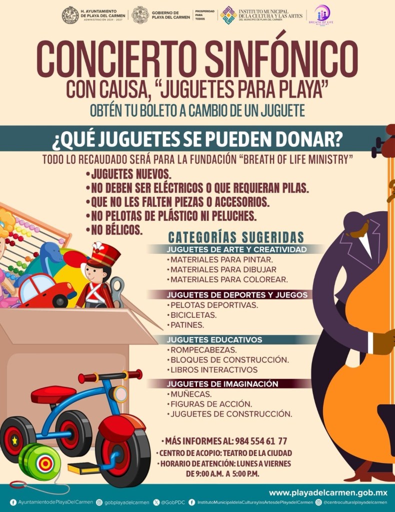 Ernesto Santiago Martínez Cuéllar, director general del Instituto Municipal de la Cultura y las Artes, explicó que este evento se realiza gracias a la alianza establecida en la agenda sociocultural de la presidenta municipal Estefanía Mercado con fundaciones como Breath of Life Ministry, organización con más de una década apoyando a familias vulnerables en Playa del Carmen, especialmente a madres solteras.