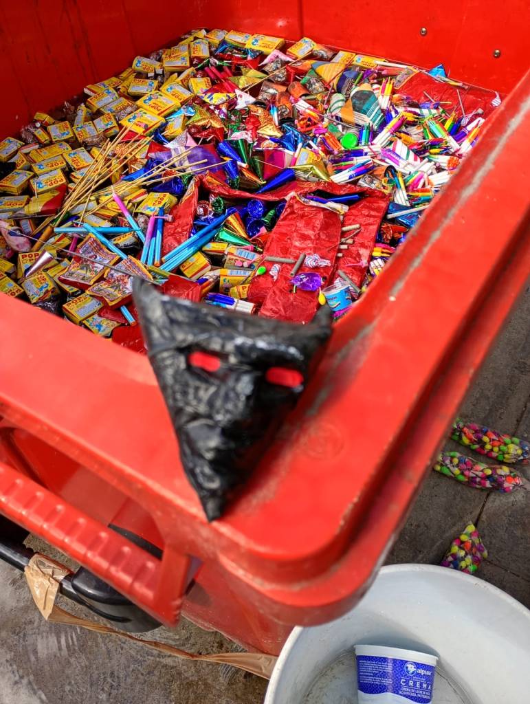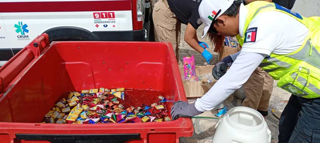 El secretario de Protección Civil, Darwin Covarrubias, informó que el material fue decomisado en distintos puntos del municipio mediante recorridos preventivos, inspecciones y la atención a reportes ciudadanos, con el objetivo de reducir riesgos y salvaguardar la integridad de la población durante las celebraciones de fin de año.