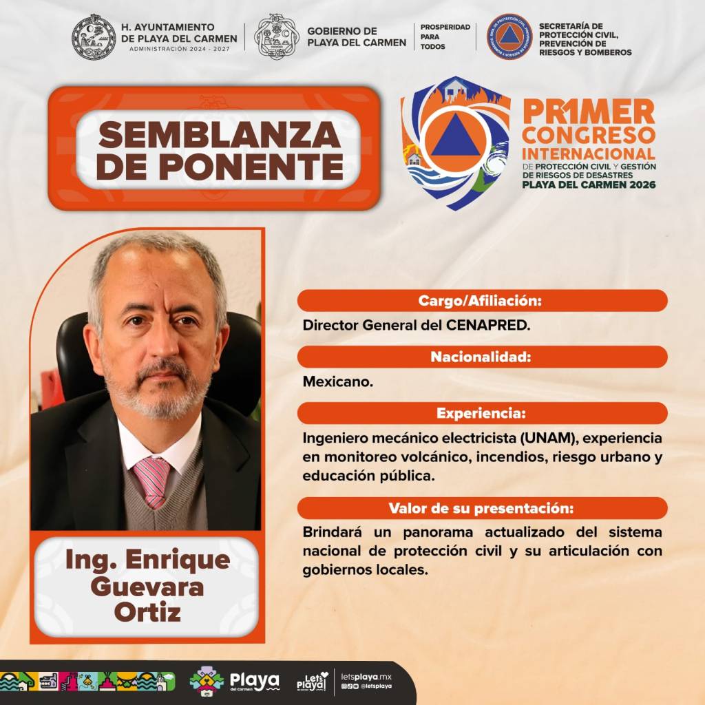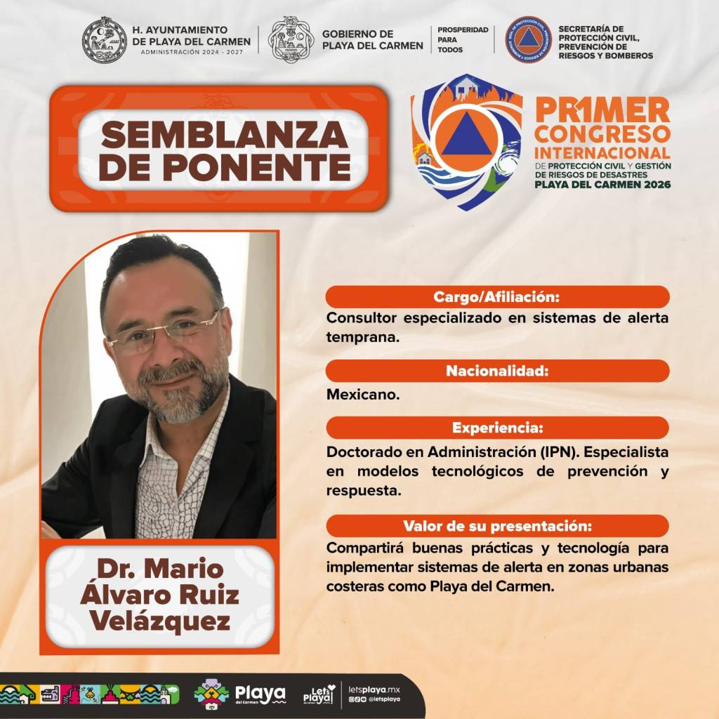 El Congreso contará con un programa académico y técnico de alto nivel, posicionando a Playa del Carmen como un referente nacional e internacional en materia de Protección Civil, al reunir a liderazgos que compartirán su experiencia con personal operativo, autoridades y público interesado en la gestión integral de riesgos de desastres.