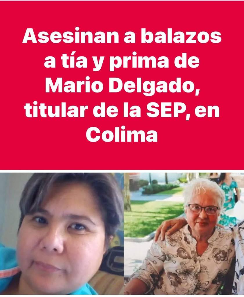 Dos familiares del secretario de Educación Pública, Mario Delgado, fueron presuntamente asesinadas en el estado de Colima, entidad que en los últimos años ha sido severamente golpeada por la violencia y la presencia del crimen organizado.