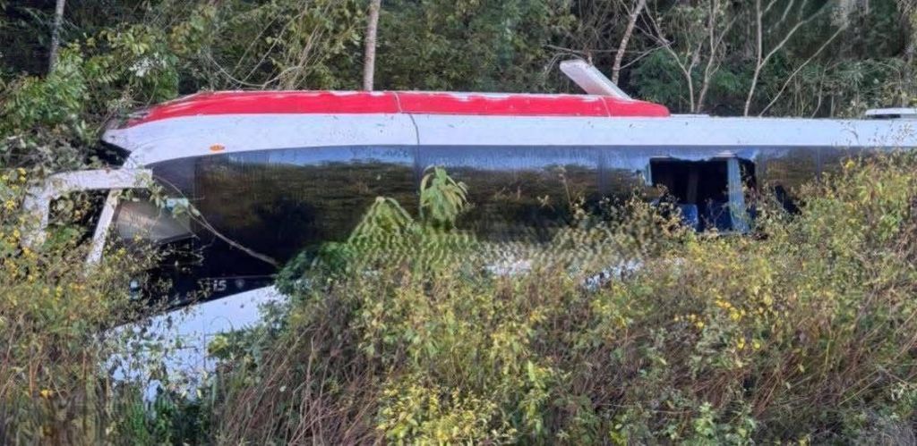 El incidente ocurrió alrededor de las 7:00 de la mañana, a unos 2 kilómetros antes del Aeropuerto Internacional de Tulum “Felipe Carrillo Puerto”, donde la unidad terminó dentro de la maleza tras perder el control.