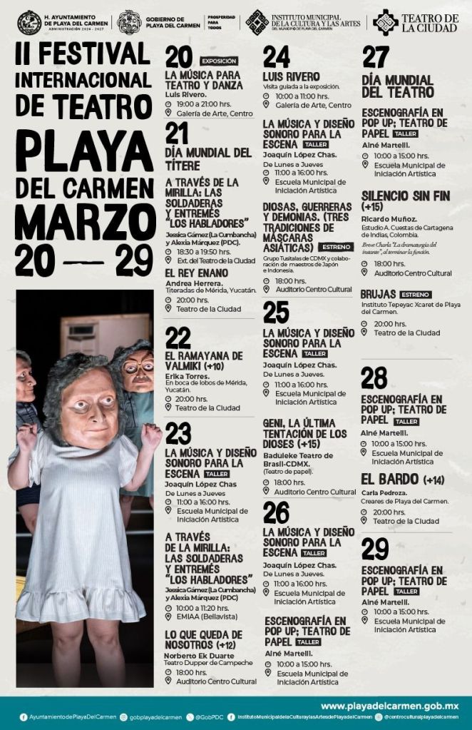 Con el objetivo de consolidar a Playa del Carmen como el epicentro cultural de Quintana Roo, el gobierno municipal encabezado por la presidenta Estefanía Mercado invita a familias locales y turistas a disfrutar del II Festival Internacional de Teatro (FIT), que se llevará a cabo del 20 al 29 de marzo con acceso completamente gratuito.