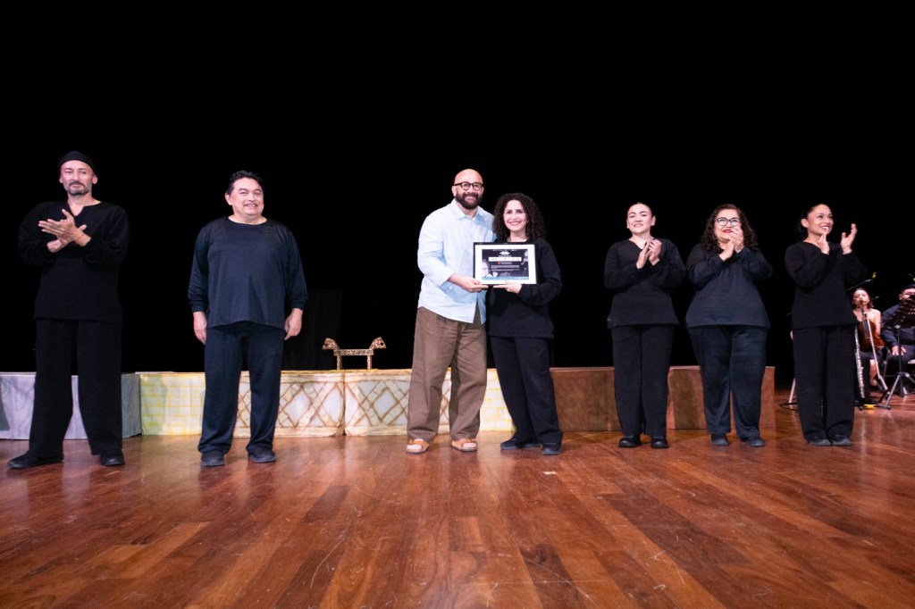 Más tarde, la obra “El Rey Enano”, inspirada en una leyenda de Uxmal, destacó por su propuesta escénica y musical, bajo la dirección del maestro Pedro Carlos Herrera. La compañía “Titeradas”, de Mérida, recibió una ovación al cierre de la función, consolidando a los títeres como protagonistas de la jornada.