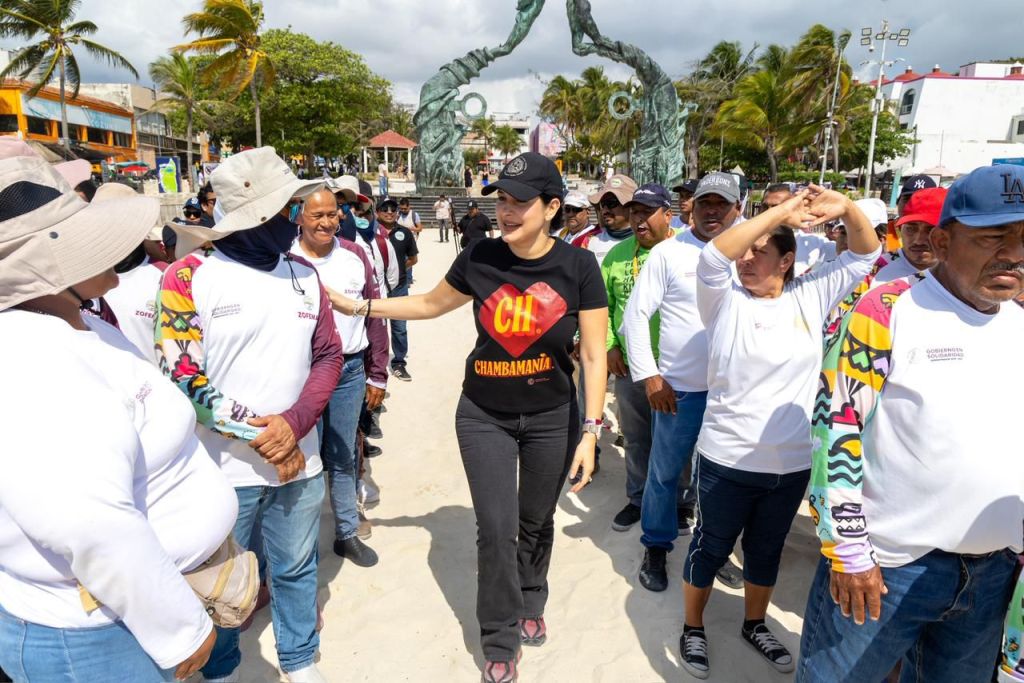 La presidenta municipal, Estefanía Mercado, encabezó este sábado la entrega de 150 kits de herramientas y uniformes al personal de la Zona Federal Marítimo Terrestre (ZOFEMAT), como parte de las acciones para reforzar la limpieza de playas y la atención al sargazo en Playa del Carmen.