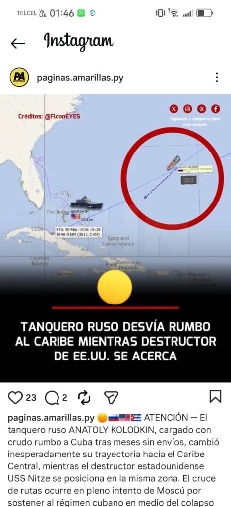 En las últimas horas, la circulación de información sobre un buque ruso cargado con petróleo con destino a Cuba ha encendido el debate en redes sociales y medios digitales, generando especulaciones sobre un posible incremento en la tensión internacional.