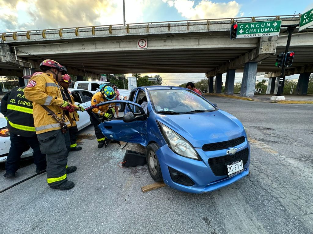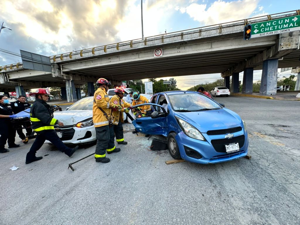 La imprudencia al volante y la falta de respeto a los señalamientos viales provocaron un aparatoso accidente la tarde de este martes en el cruce del Boulevard Playa del Carmen con la Calle 38, dejando como saldo una mujer lesionada y severos daños materiales.
