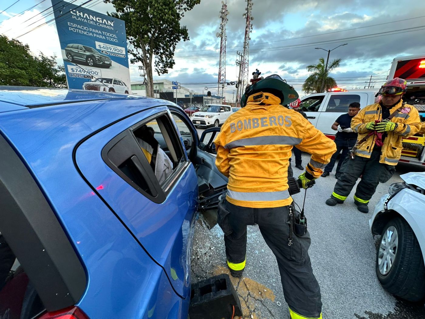 La imprudencia al volante y la falta de respeto a los señalamientos viales provocaron un aparatoso accidente la tarde de este martes en el cruce del Boulevard Playa del Carmen con la Calle 38, dejando como saldo una mujer lesionada y severos daños materiales.
