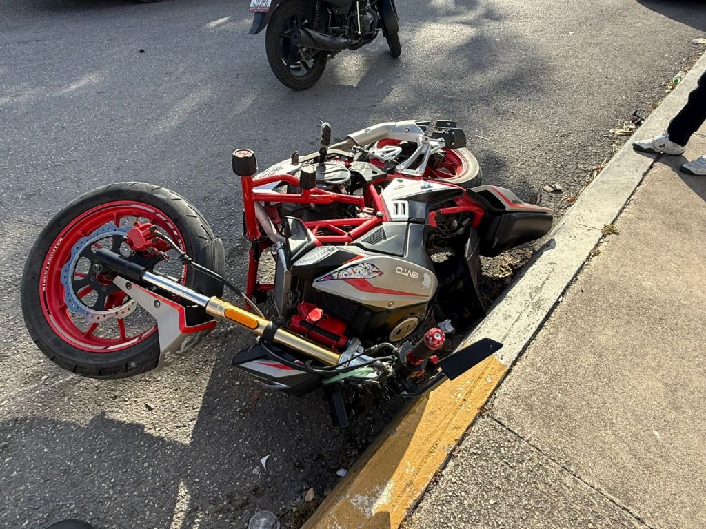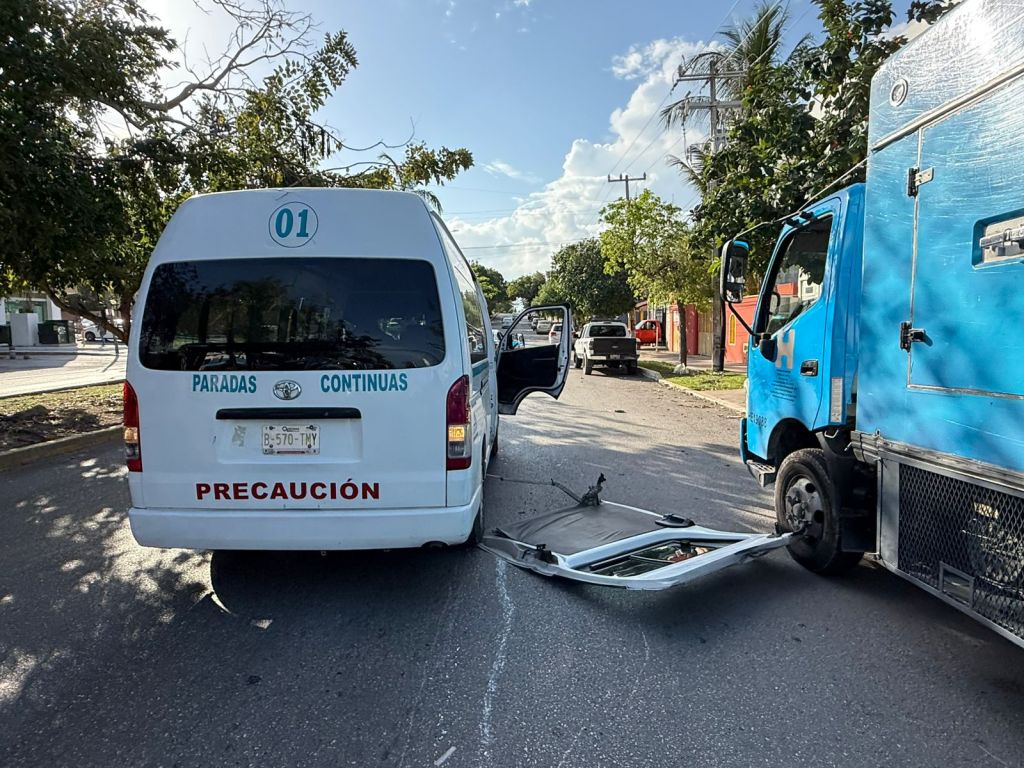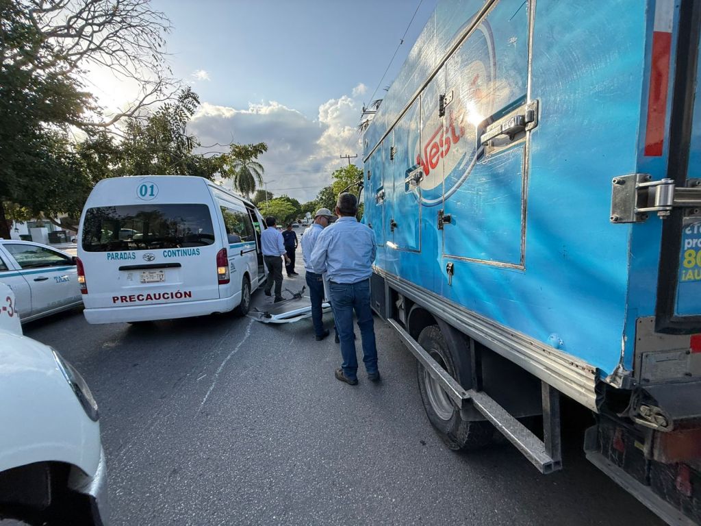 El percance se registró sobre la avenida Juárez, a la altura de la calle 60, cuando una combi del servicio colectivo (unidad 01) y una motocicleta Vento de 300 c.c. circulaban con dirección al Arco Vial.