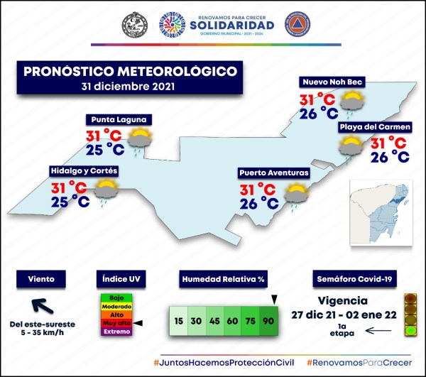 *PRONÓSTICO METEOROLÓGICO PARA EL MUNICIPIO DE SOLIDARIDAD*_06:45h 31 diciembre 2021