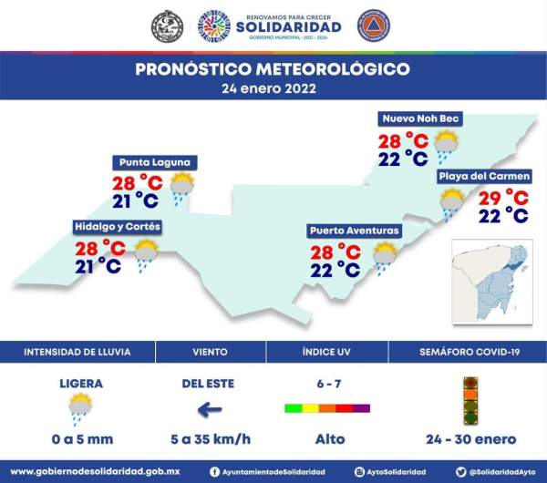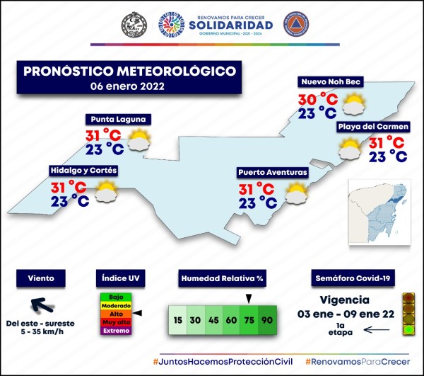 PRONÓSTICO METEOROLÓGICO PARA EL MUNICIPIO DE SOLIDARIDAD05:45h 06 enero 2022