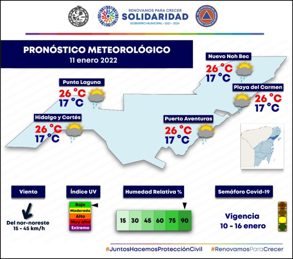 PRONÓSTICO METEOROLÓGICO PARA EL MUNICIPIO DE SOLIDARIDAD_11 enero 2022_05:45h_
