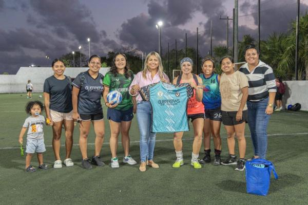 Impulsa Fany Gallegos el deporte femenil en Tulum con entrega de balones, redes y uniformes